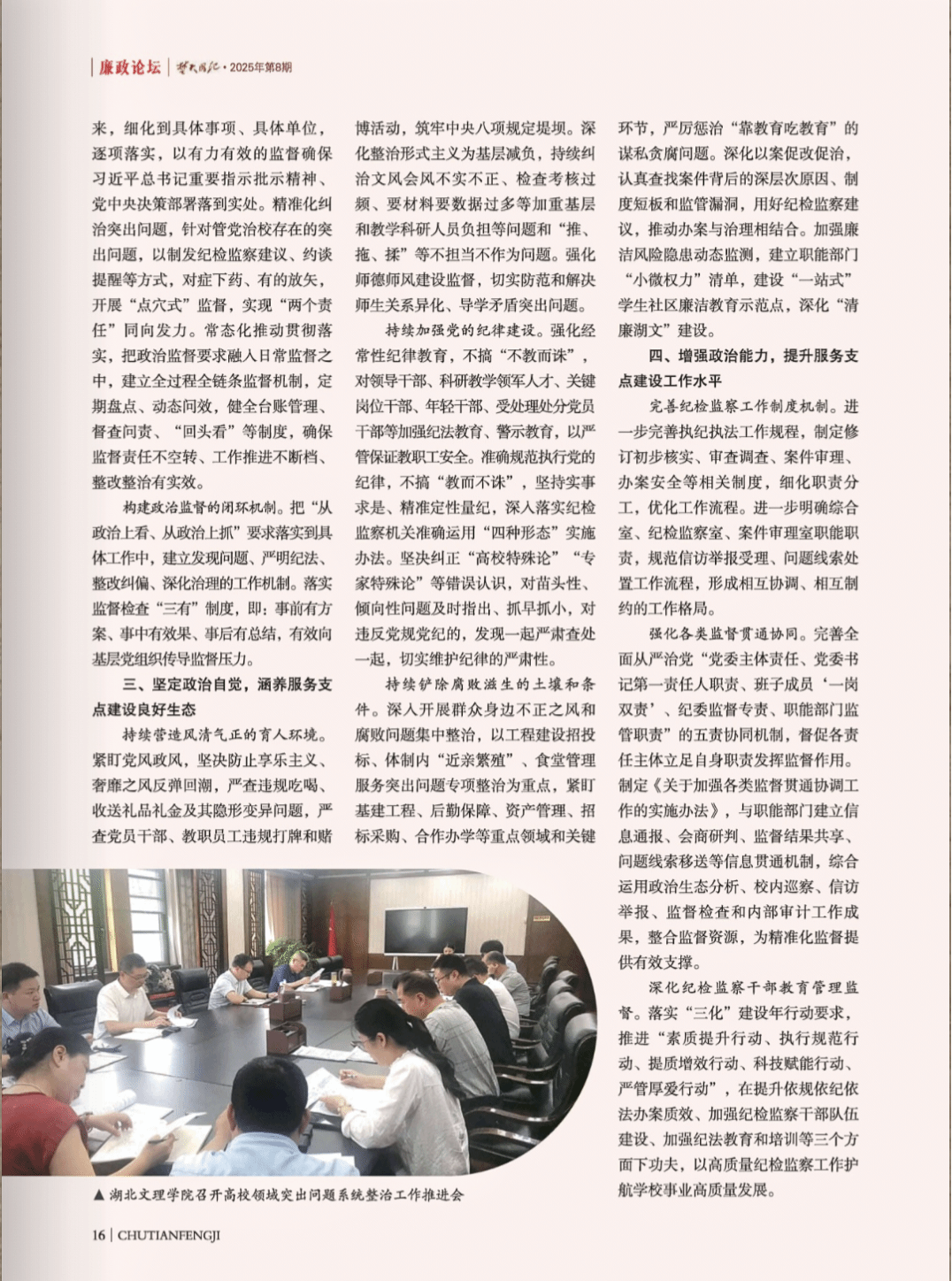 (纪委·监察专员办公室 通讯员 胡旭)近日,中共湖北省纪律检查委员会、湖北省监察委员会主办的刊物《楚天风纪》(2025年第8期),刊发了学校纪委工作经验文章《为地方高校服务支点建设清障护航》。